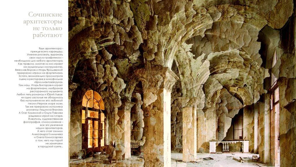 Сочинская городская организация общественной организации «Союза архитекторов России» существует с 1934 года. В Олимпийском 2014 году Сочинской городской организации «Союза архитекторов России» исполнится 80 лет, а Сочинскому Дому архитектора 45 лет. Сочинская городская организация Союза архитекторов является старейшей в крае и одной из старейших организаций в стране.